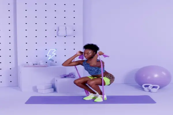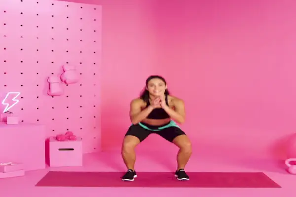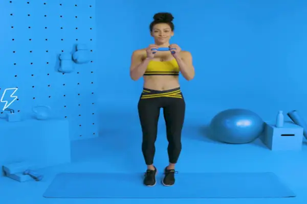 Keine Gewichte, kein Problem. Bänder erhöhen den Widerstand bei verschiedenen Arten von Kniebeugen, wenn Sie keine Hanteln oder Kettlebells zur Hand haben. Darüber hinaus hilft Ihnen das Binden eines Bandes über oder unter Ihren Knien, Ihre Gesäßmuskulatur zu aktivieren und Sie daran zu erinnern, Ihre Knie beim Hocken nach außen zu drücken (anstatt sie nach innen sinken zu lassen).