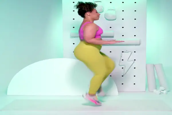 - Springen Sie sofort mit den Füßen wieder hinein, springen Sie in die Luft und landen Sie sanft. Das ist 1 Wiederholung.