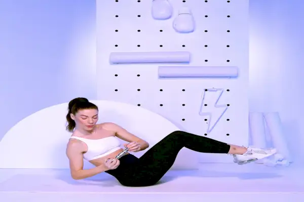 - Heben Sie in einer Bewegung Oberkörper, Arme und Beine an, balancieren Sie auf dem Steißbein und bilden Sie mit dem Körper eine V-Form.